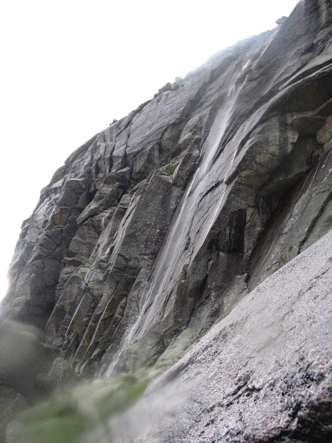 Scendendo ora in direzione del casotto Pngp dell'Arculà possiamo vedere gli "arian" belli ingrossati e le pareti rocciose che grondano acqua. Evidentemente in questo punto del vallone l'intensità della precipitazione è stata maggiore...